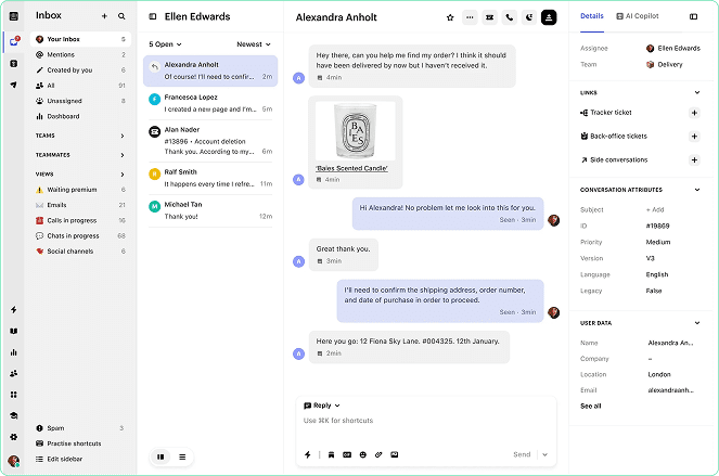You can use saved replies or even AI to speed up responses. But more importantly, having access to customer details like past interactions and ratings helps you adjust the tone of the interaction and build stronger connections.