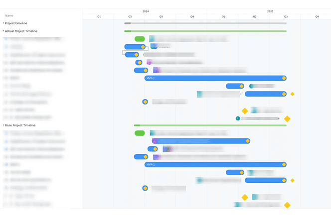 - A Baseline Gantt View that shows the planned dates (from custom fields)