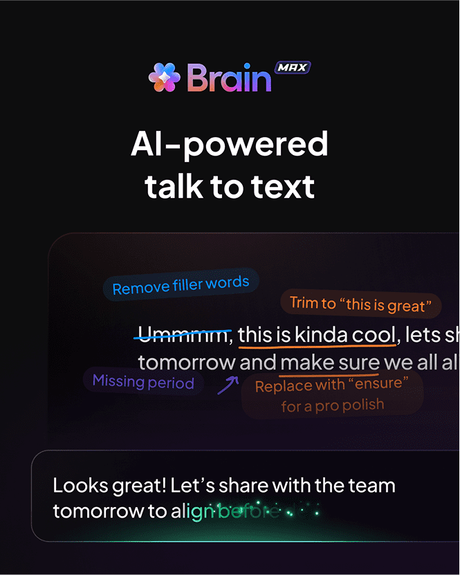 Talk to Text lets you dictate directly into Brain MAX or any app, emails, meeting notes, search queries, or documents.
