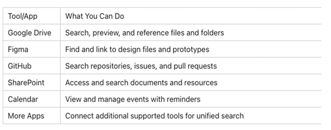 - App Filters: Focus results on Google Drive, Figma, or any linked app.