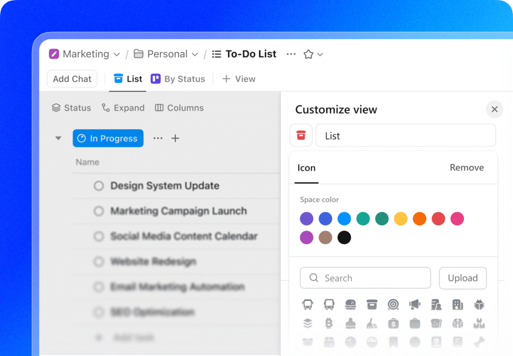 ClickUp has introduced a simple but super useful enhancement: custom icons for views.