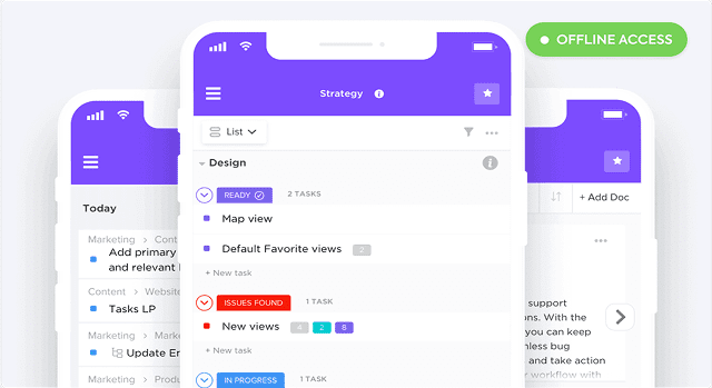 While ClickUp does offer limited offline support via its mobile app, it’s not practical for: