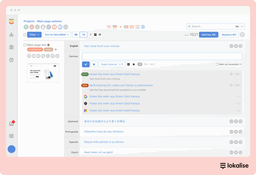 For businesses dealing with large projects, such as multilingual websites or apps, Lokalise AI is a true game-changer.
